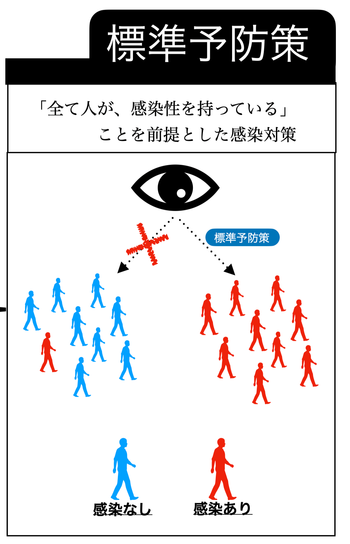 「全ての人が感染性を持っている」という前提でなされる感染予防策です。