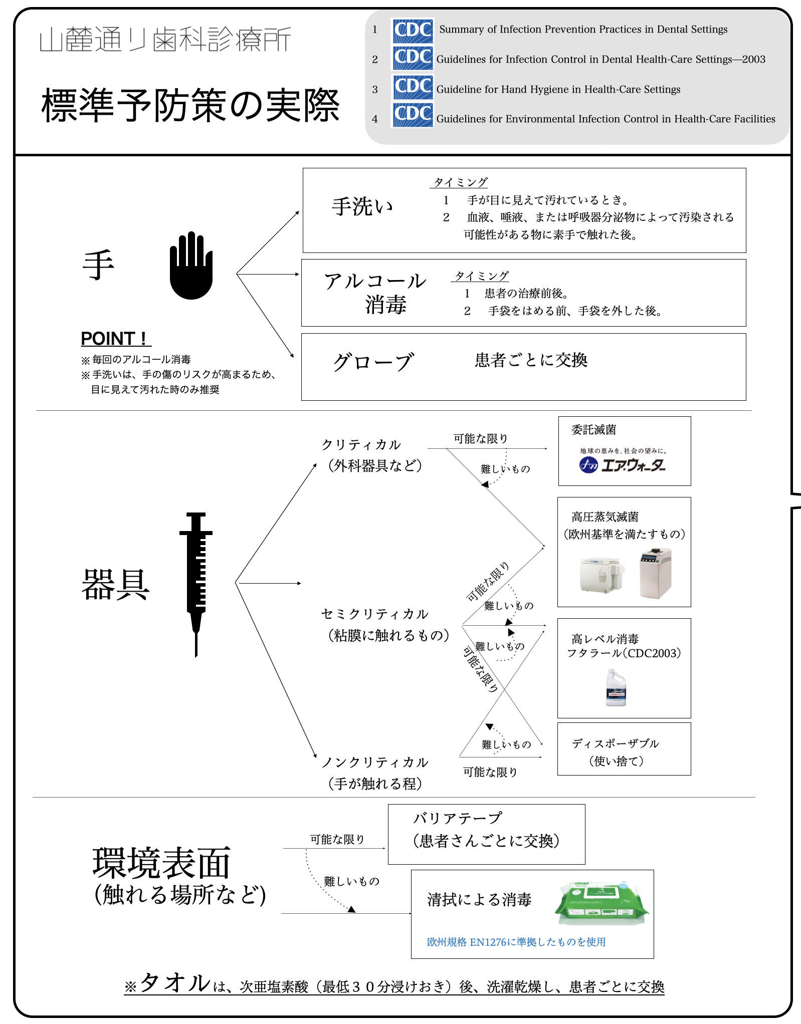 まず、当院での感染予防策の全体像を、図にまとめています。